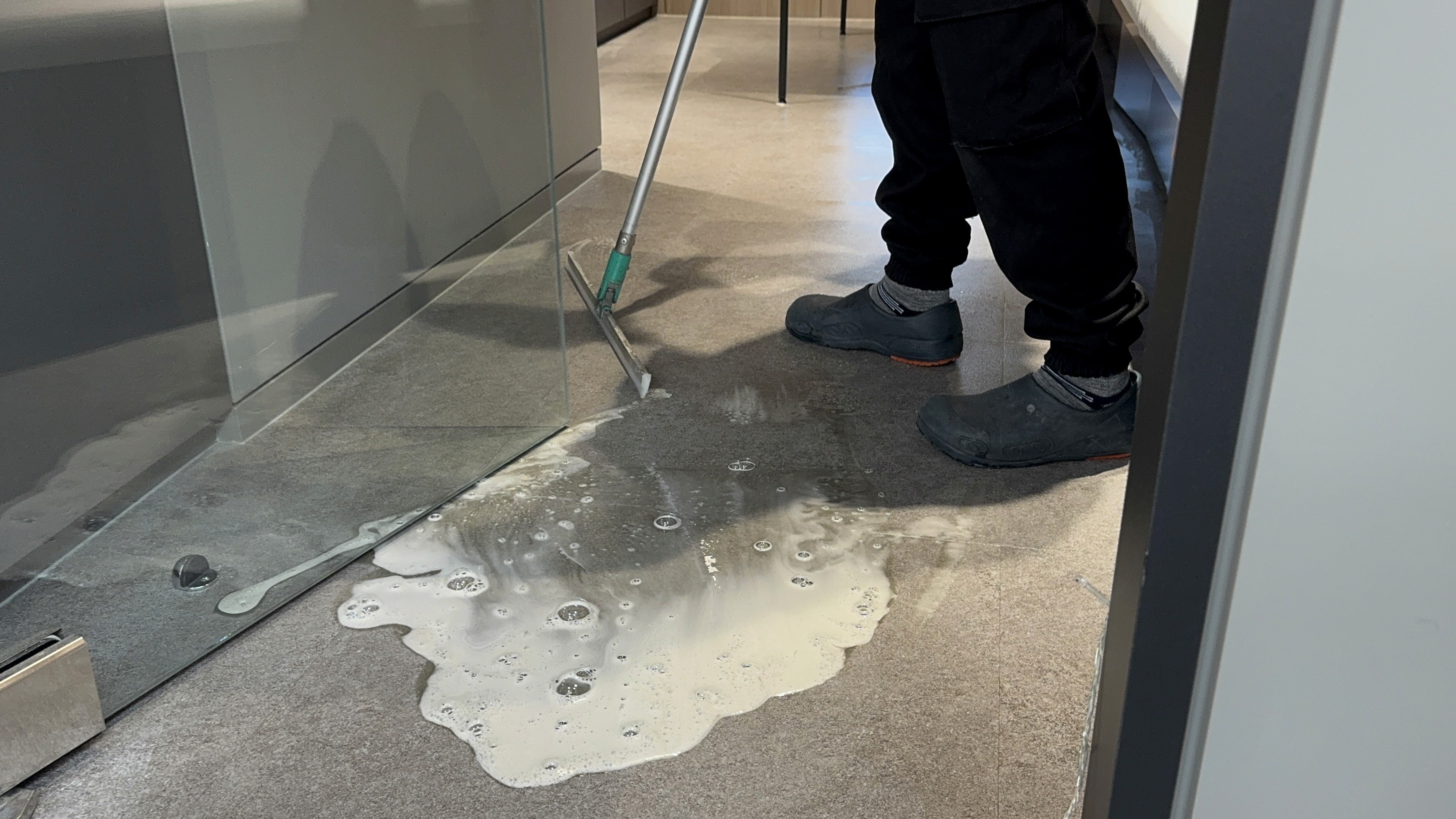 먼지·오염물 제거 후 바닥재에 맞는 세정제를 사용해야 합니다.