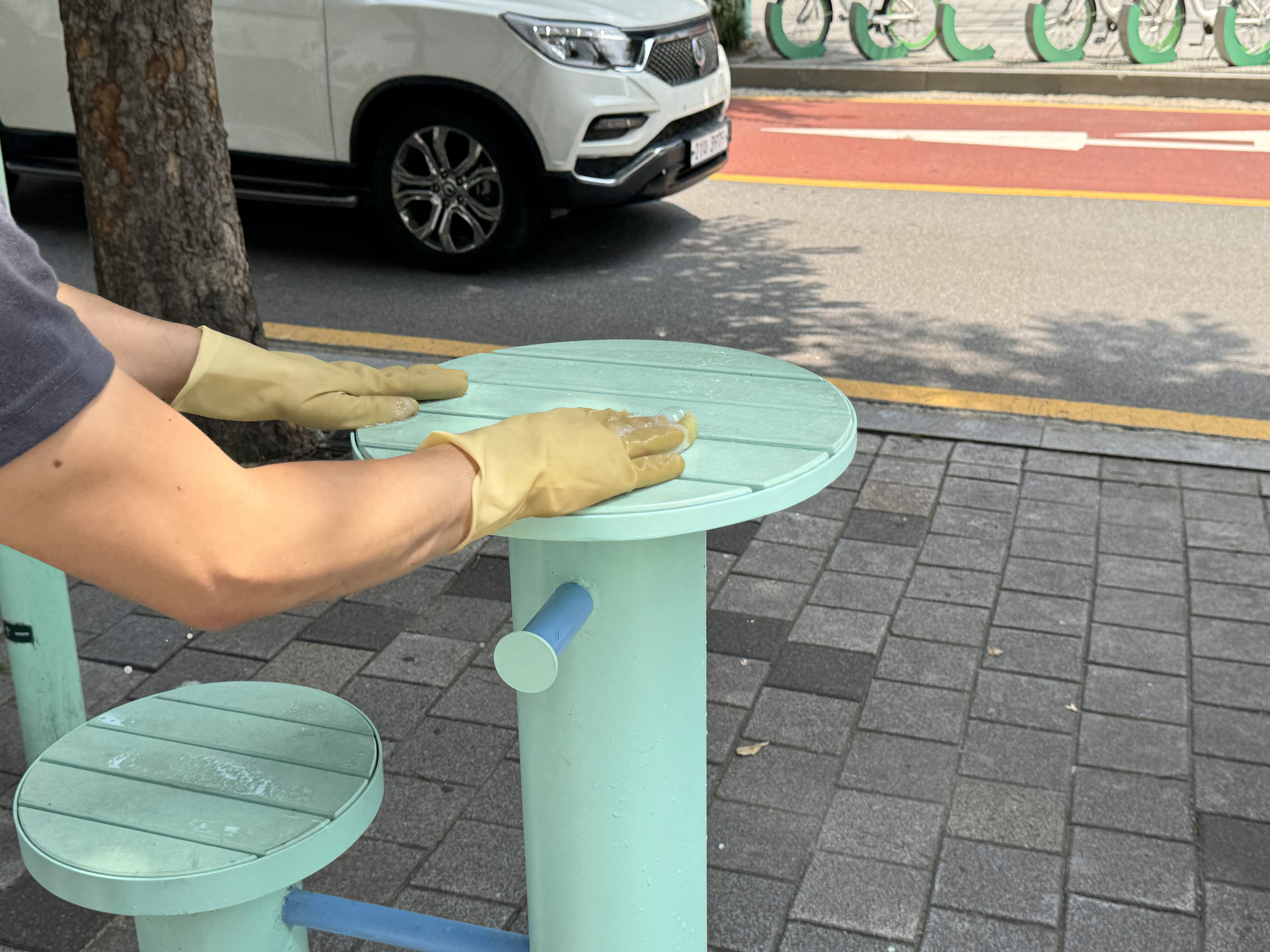 세제를 도포하고, 일정 시간 동안 반응시킨 후, 고압세척기나 스팀 청소기를 이용하여 표면을 깨끗하게 세척합니다. 브러시나 스크러버를 이용하여 모서리나 틈새 등 손이 닿기 어려운 부분도 꼼꼼히 청소합니다.